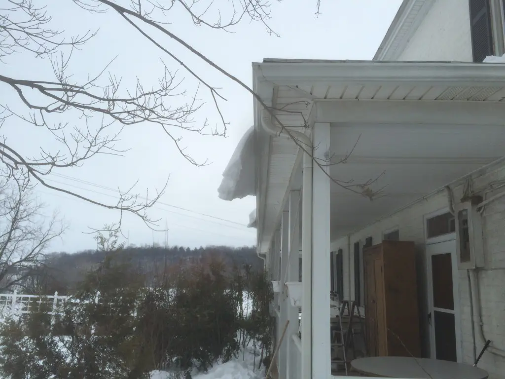 Did you have snow hanging out over your gutters like this during the recent snow in the Harrisonburg, Staunton and Waynesboro area?  If so you should consider a snow retention system or snow guards to protect your guttering and shrubs from getting damaged!  Call us today for a free estimate!  (540)8202705